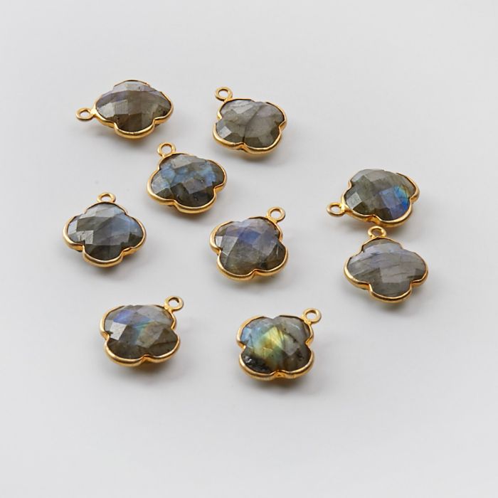 Srebrna zawieszka labradoryt w srebrnym okuciu AG925 pozłacana 12,5mm