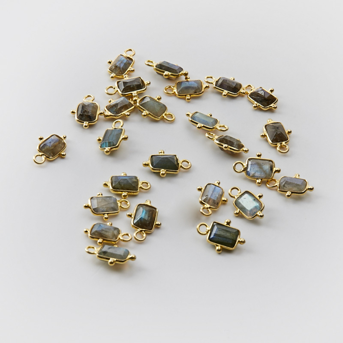 Srebrna zawieszka labradoryt w srebrnym okuciu AG925 pozłacana 7x5mm