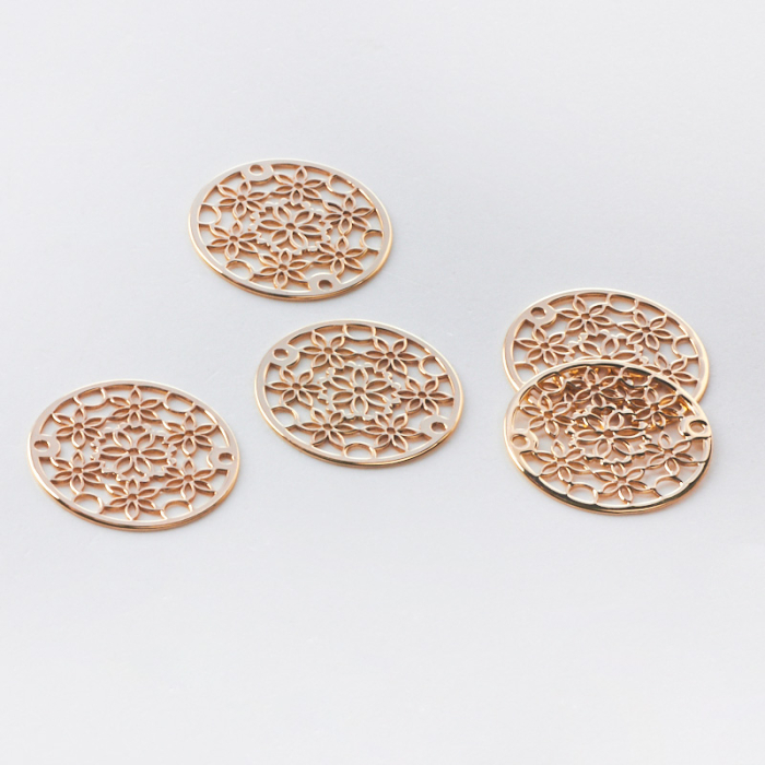 Srebrna zawieszka\ łącznik kółko z kwiatkami AG925 pozłacane 16mm