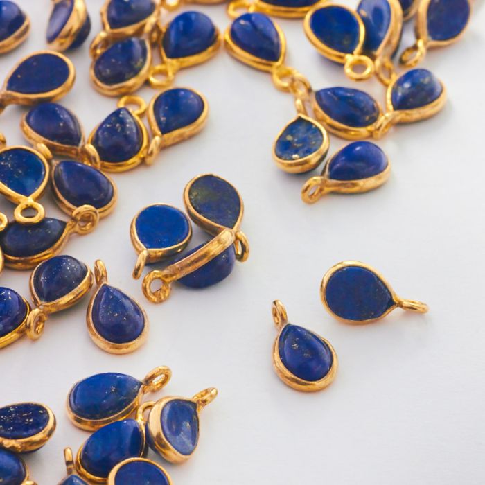 Srebrna zawieszka lapis lazuli łezka w okuciu pozłacana AG925 6,5x4,5mm