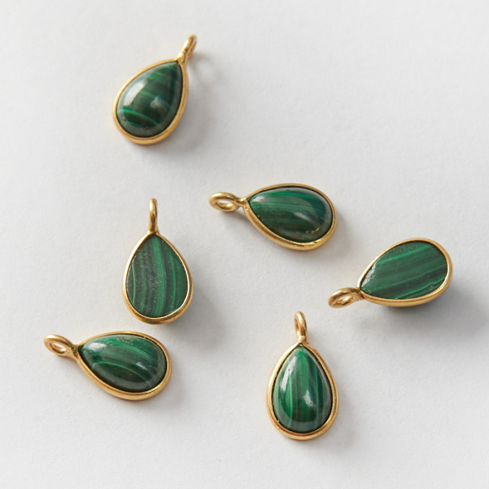 Srebrna zawieszka łezka malachit w okuciu AG925 pozłacana 9x6mm
