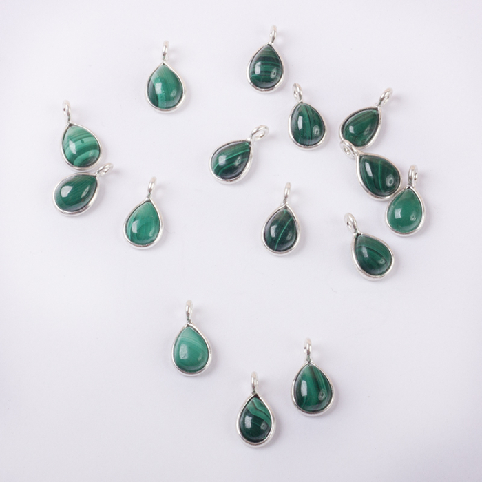Srebrna zawieszka malachit łezka gładka w okuciu AG925 6,5x5mm