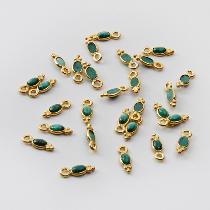 Srebrna zawieszka malachit w srebrnym okuciu AG925 pozłacana 4,5mm