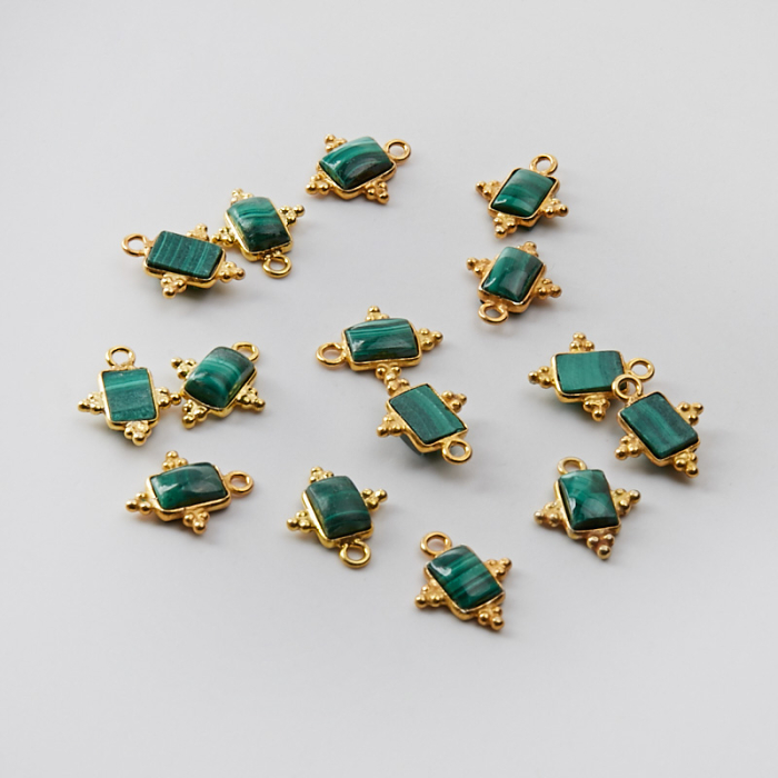 Srebrna zawieszka malachit w srebrnym okuciu AG925 pozłacana 7x5mm