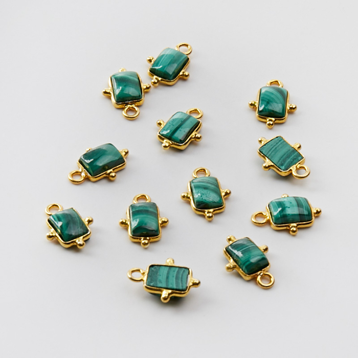 Srebrna zawieszka malachit w srebrnym okuciu AG925 pozłacana 7x5mm