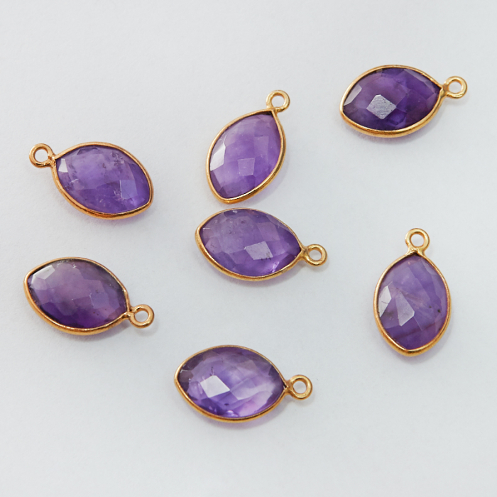 Srebrna zawieszka markiza ametyst w okuciu AG925 pozłacana 12x8mm