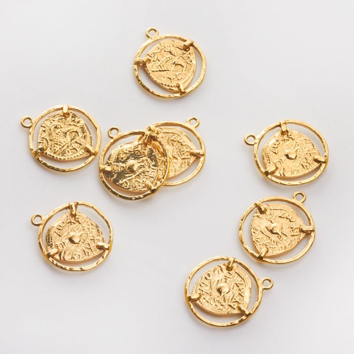 Srebrna zawieszka moneta antyczna w ramce AG925 pozłacana 20,5mm