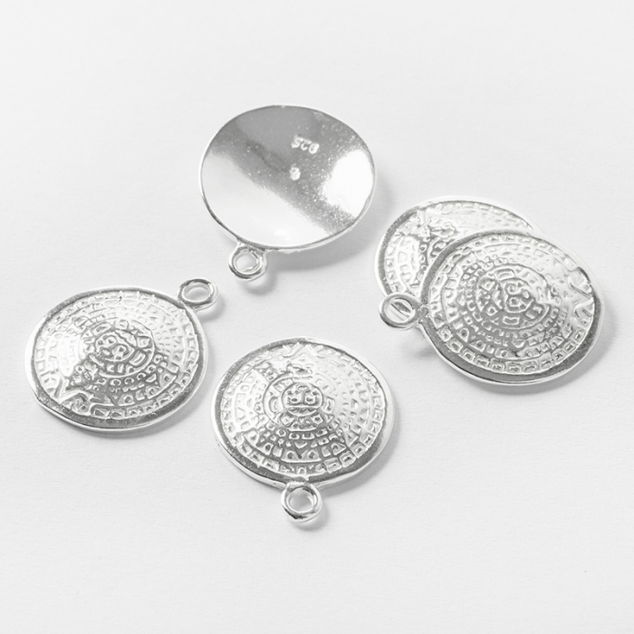 Srebrna zawieszka moneta aztecka wypukła AG925 14mm
