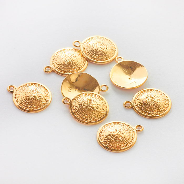 Srebrna zawieszka moneta aztecka wypukła AG925 pozłacana 14mm