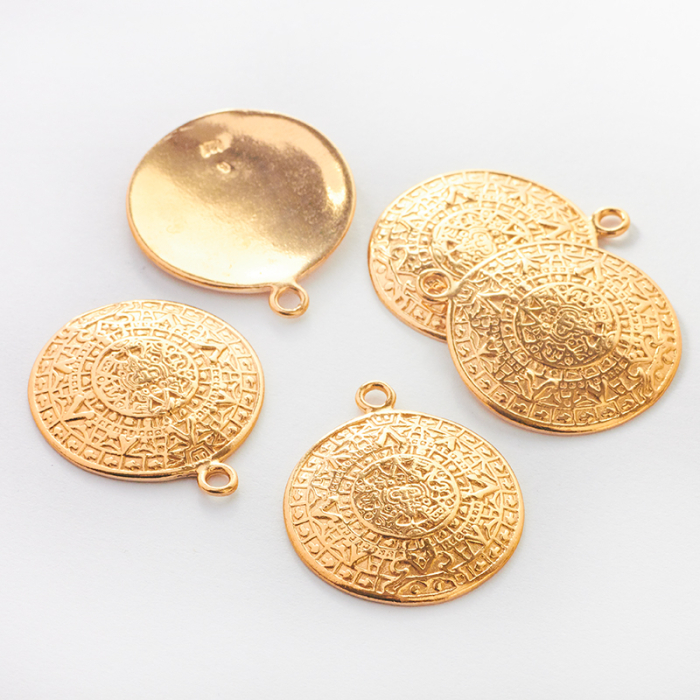 Srebrna zawieszka moneta aztecka wypukła duża AG925 pozłacana 22mm