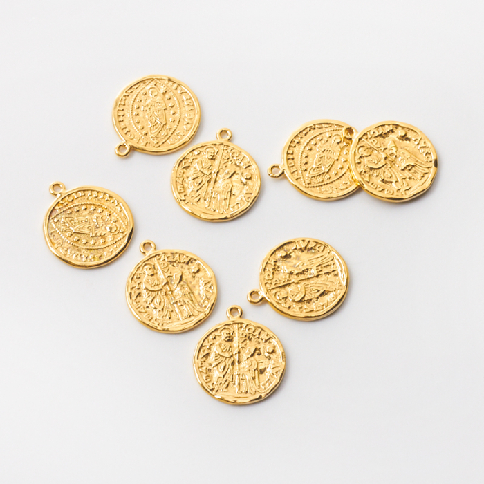 Srebrna zawieszka moneta ze świętymi AG925 pozłacana 18mm