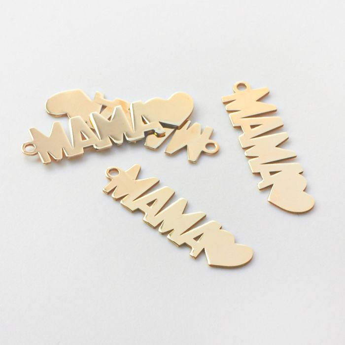 Srebrna zawieszka napis "Mama" z sercem AG925 pozłacana 22,5mm