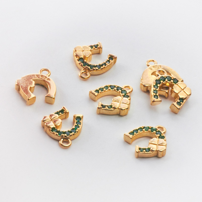 Srebrna zawieszka podkowa z cyrkoniami AG925 pozłacana 10,5mm