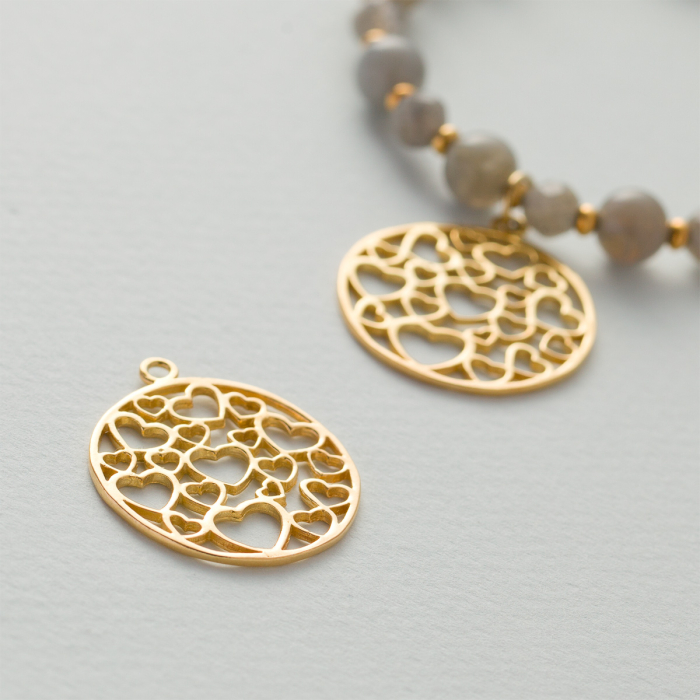 Srebrna zawieszka pozłacana serca w kole 25mm AG925