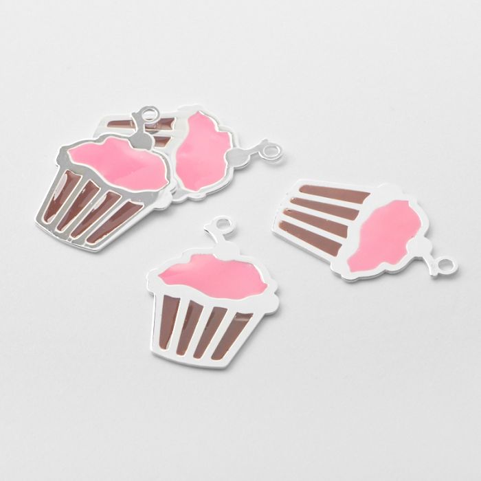 Srebrna zawieszka różowa babeczka emaliowana AG925 22mm