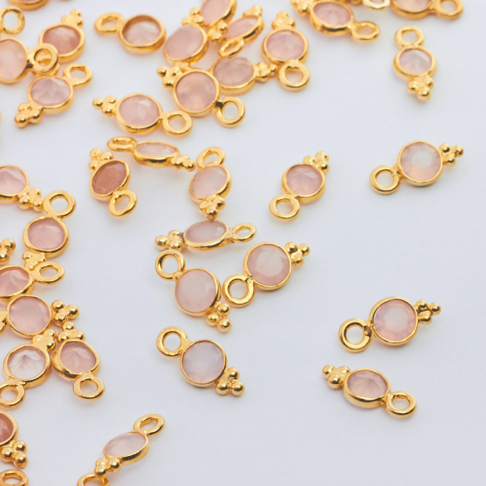 Srebrna zawieszka różowy chalcedon w okuciu AG925 pozłacana 10mm