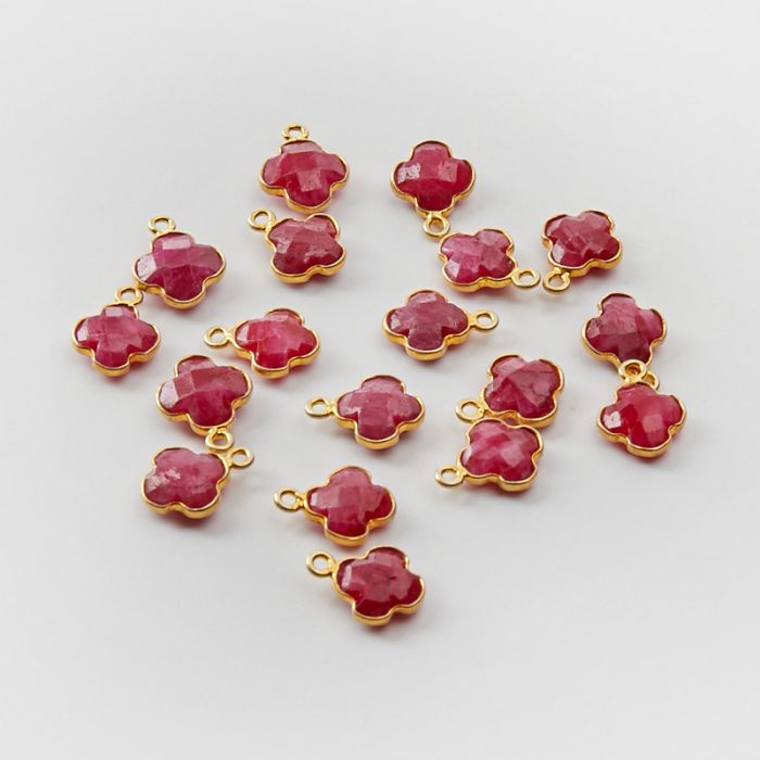 Srebrna zawieszka rubin koniczyna marokańska w srebrnym okuciu AG925 pozłacana 8,5mm