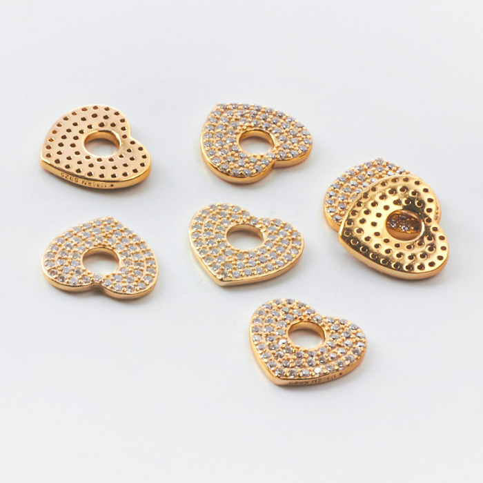 Srebrna zawieszka serce z cyrkoniami AG925 pozłacane 11mm