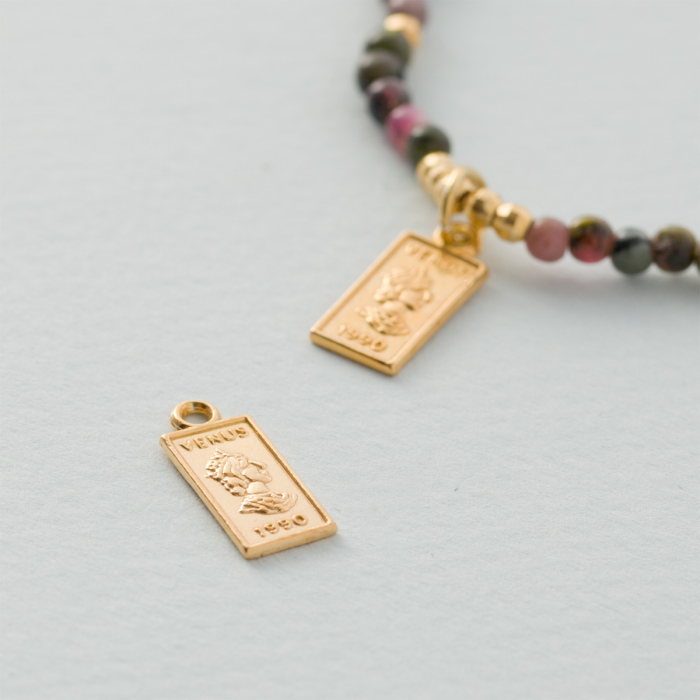 Produkt wykonany jest ze srebra próby 925 pokrytego warstwą złocenia galwanicznego. Złocenie stanowi warstwę wierzchnią i w trakcie użytkowania może ulegać naturalnemu ścieraniu. Trwałość powłoki zależy m.in. od intensywności noszenia, tarcia, kontaktu z wodą i kosmetykami oraz indywidualnego pH skóry. Proces ten jest naturalną cechą wyrobu złoconego i nie stanowi wady produktu.