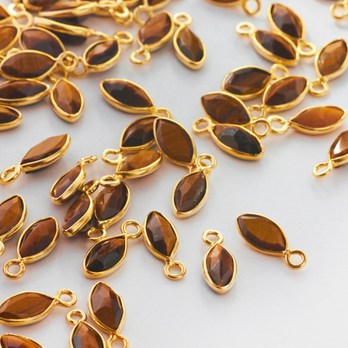 Srebrna zawieszka tygrysie oko w okuciu pozłacana AG925 7,5x4mm