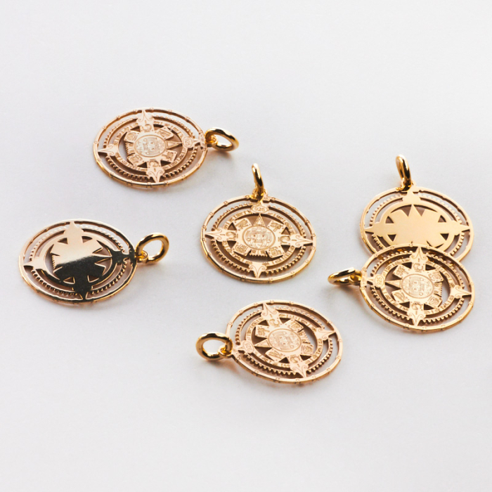 Srebrna zawieszka wzór Asteków AG925 pozłacana 15mm