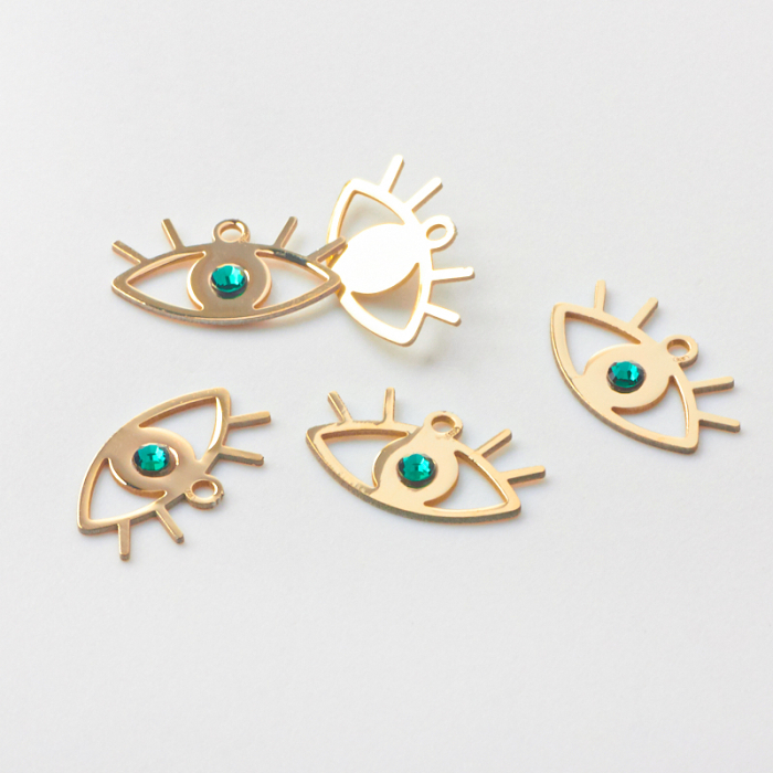 Srebrna zawieszka zielone oko AG925 pozłacana 8mm