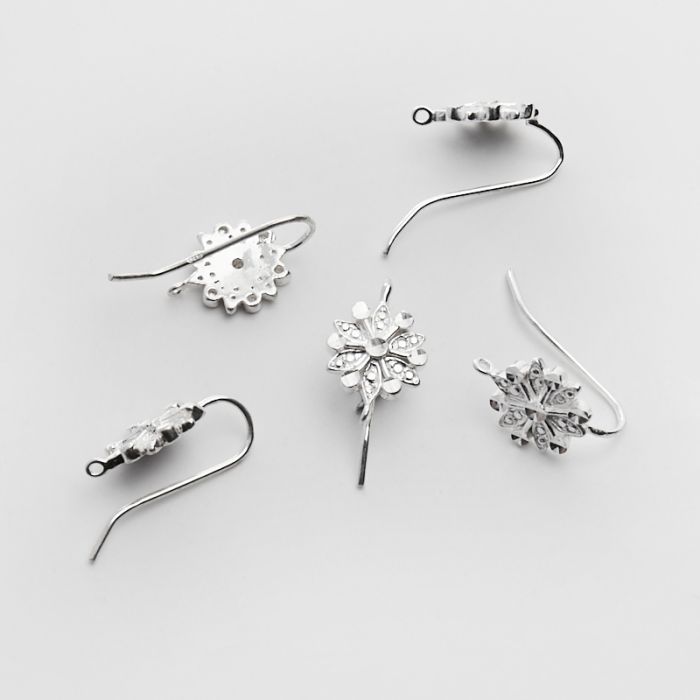 Srebrne bazy kolczyka kwiatki z cyrkoniami z podwieszeniem AG925 21mm