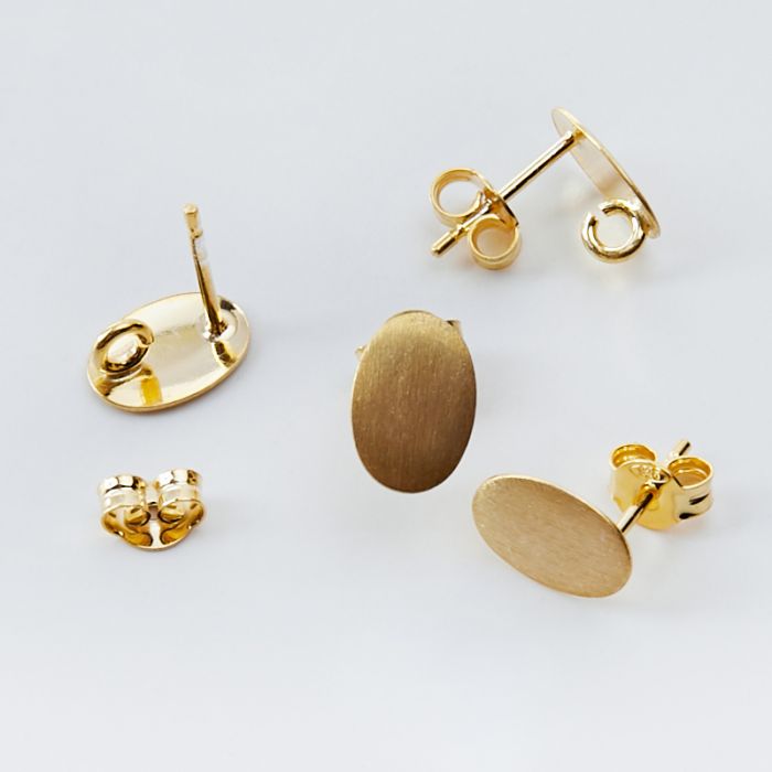 Srebrne bazy kolczyka owale satynowe z podwieszeniem AG925 pozłacane 10mm