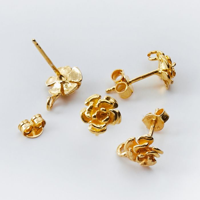 Srebrne bazy kolczyka różyczki z podwieszeniem AG925 pozłacane 9,5mm