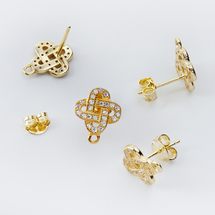 Srebrne bazy kolczyków koniczyna marokańska z cyrkoniami z podwieszeniem AG925 pozłacane 12,5mm