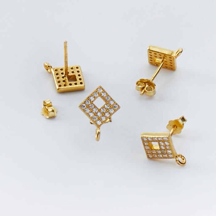Srebrne bazy kolczyków kwadraty z cyrkoniami z podwieszeniem AG925 pozłacane 12,5mm