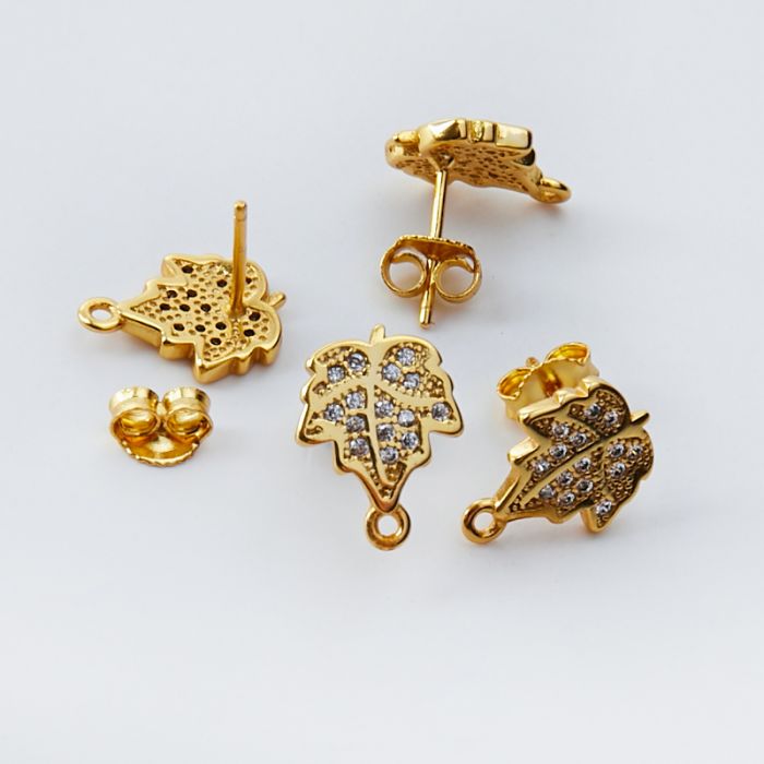 Srebrne bazy kolczyków listki z cyrkoniami z podiweszeniem AG925 pozłacane 13mm
