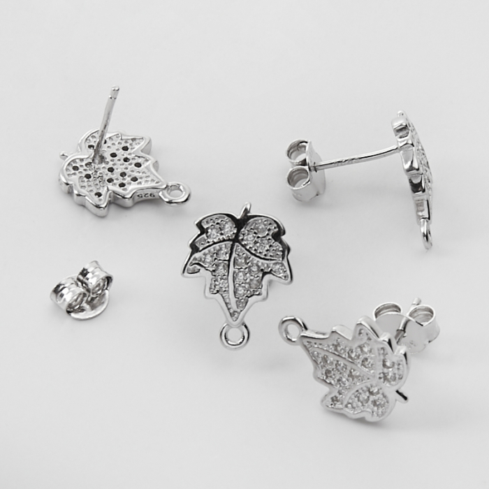 Srebrne bazy kolczyków listki z cyrkoniami z podwieszeniem AG925 rodowane 13mm