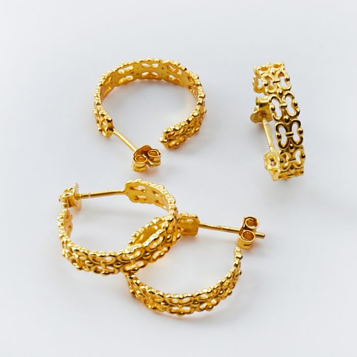 Srebrne kolczyki koła otwarte w kropki AG925 pozłacane 20mm