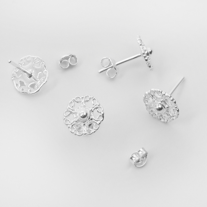 Srebrne kolczyki kółko ażurowe z kropeczką AG925 9mm