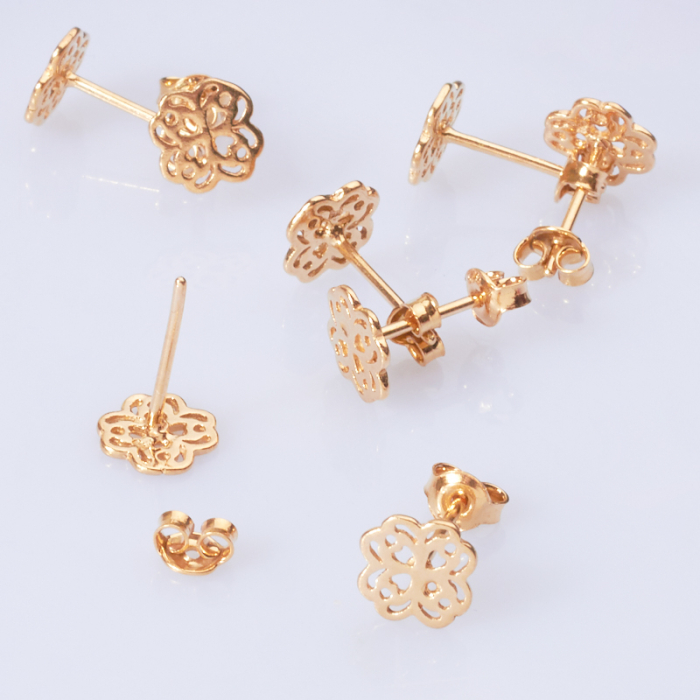 Srebrne kolczyki koniczynka ażurowa AG925, pozłacane 8mm