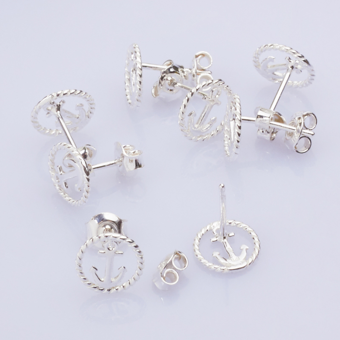 Srebrne kolczyki kotwica w kółku AG925 9mm