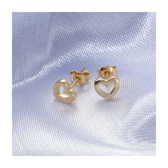 Srebrne kolczyki serca wycięte AG925 pozłacane 6mm