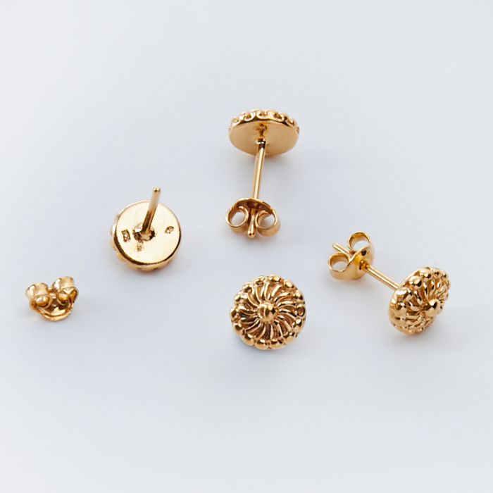 Srebrne kolczyki sztyfty kółka w kropeczki AG925 pozłacane 7mm