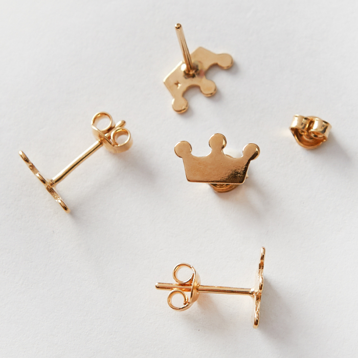 Srebrne kolczyki sztyfty korona AG925 pozłacane 5,5x9mm
