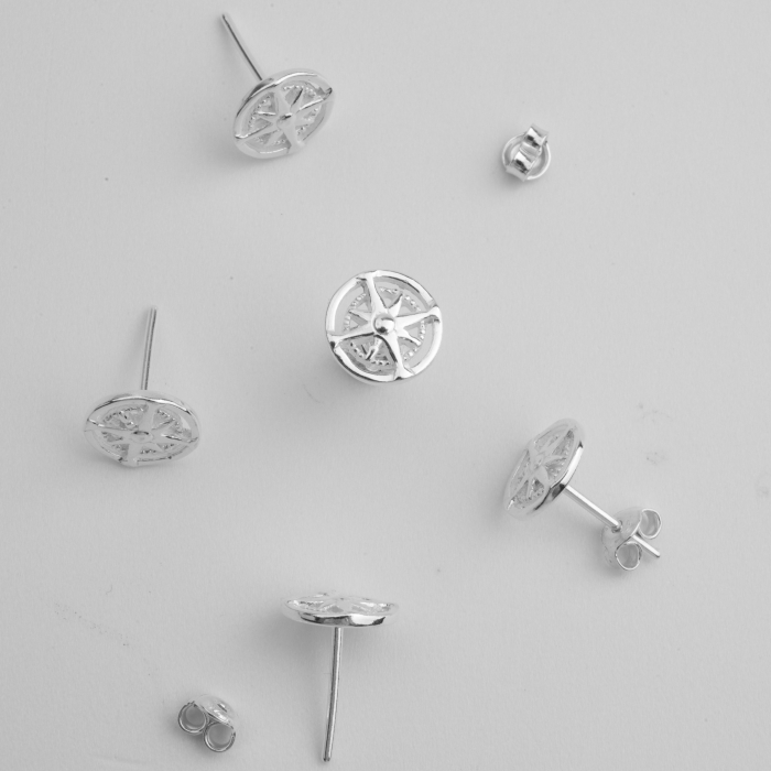 Srebrne kolczyki sztyfty róże wiatrów AG925 9mm