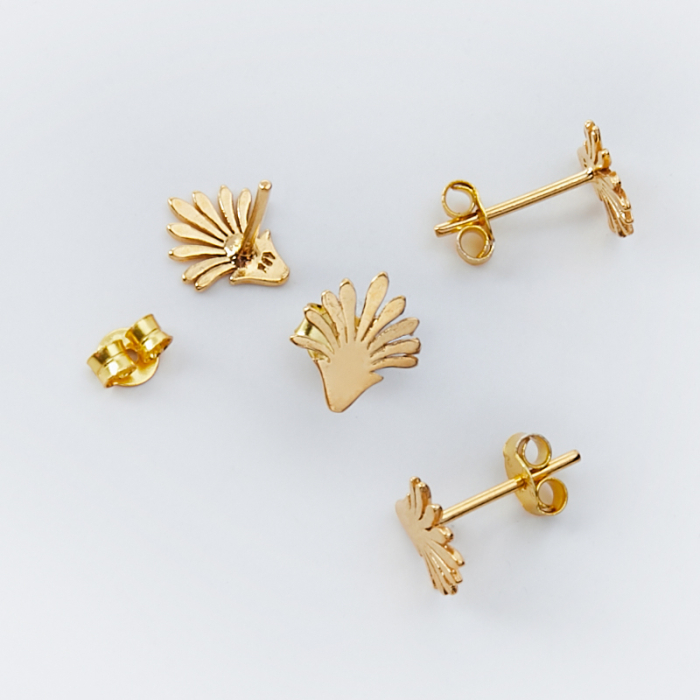 Srebrne kolczyki sztyfty wachlarze AG925 pozłacane 9mm