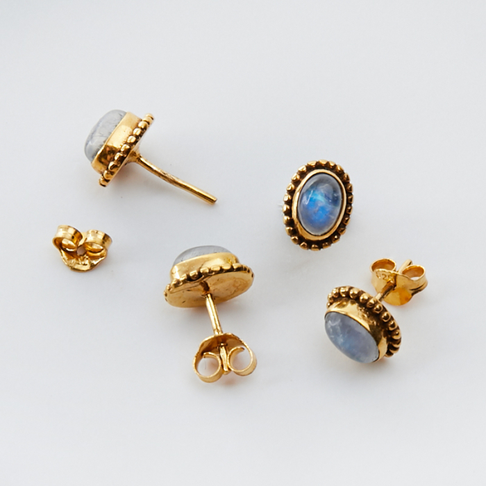 Srebrne kolczyki sztyfty z owalnym labradorytem AG925 pozłacane 8mm