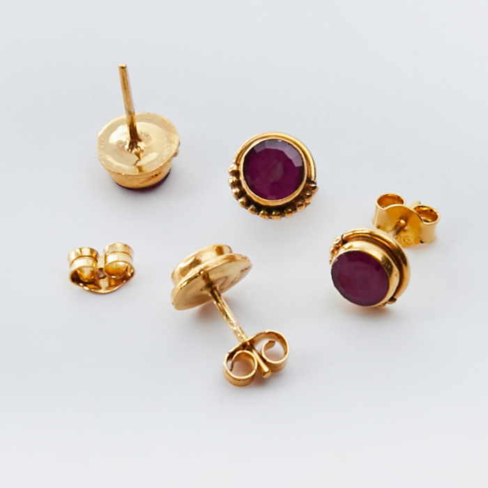 Srebrne kolczyki sztyfty z rubinem AG925 pozłacane 7mm