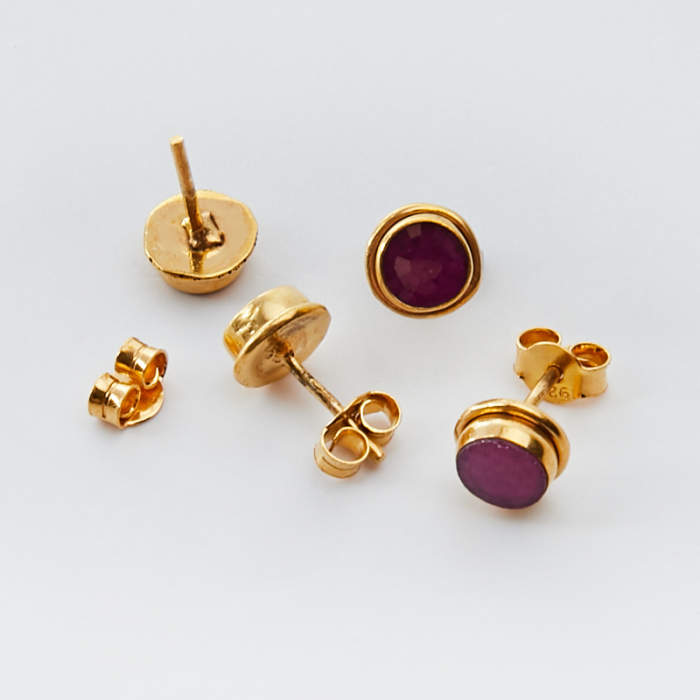 Srebrne kolczyki sztyfty z rubinem AG925 pozłacane 7mm