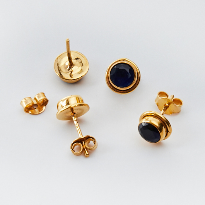 Srebrne kolczyki sztyfty z szafirem AG925 pozłacane 6,5mm