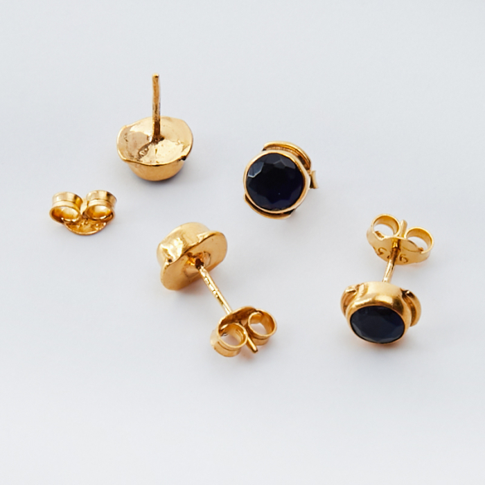 Srebrne kolczyki sztyfty z szfirem AG925 pozłacane 7mm
