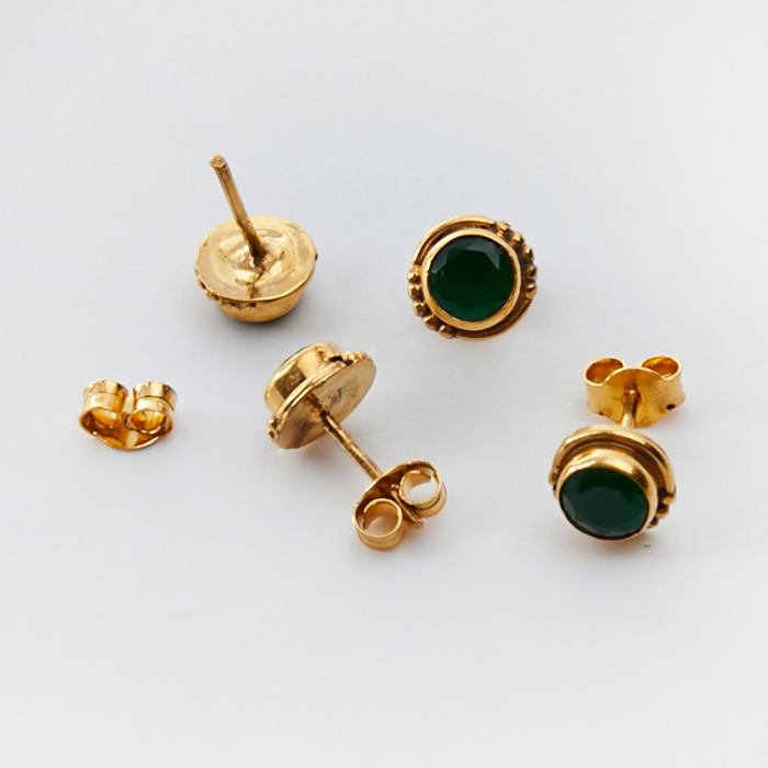 Srebrne kolczyki sztyfty z zielonym onyksem AG925 pozłacane 7mm