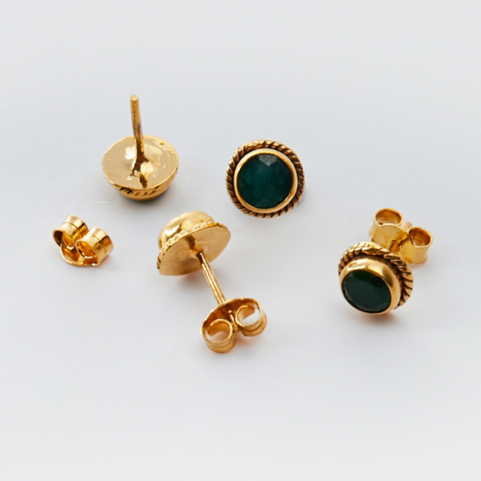 Srebrne kolczyki sztyfty z zielonym onyksem AG925 pozłacane 7mm