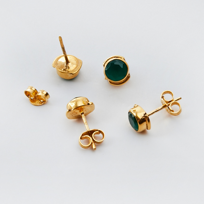 Srebrne kolczyki sztyfty z zielonym onyksem AG926 pozłacane 6,5mm